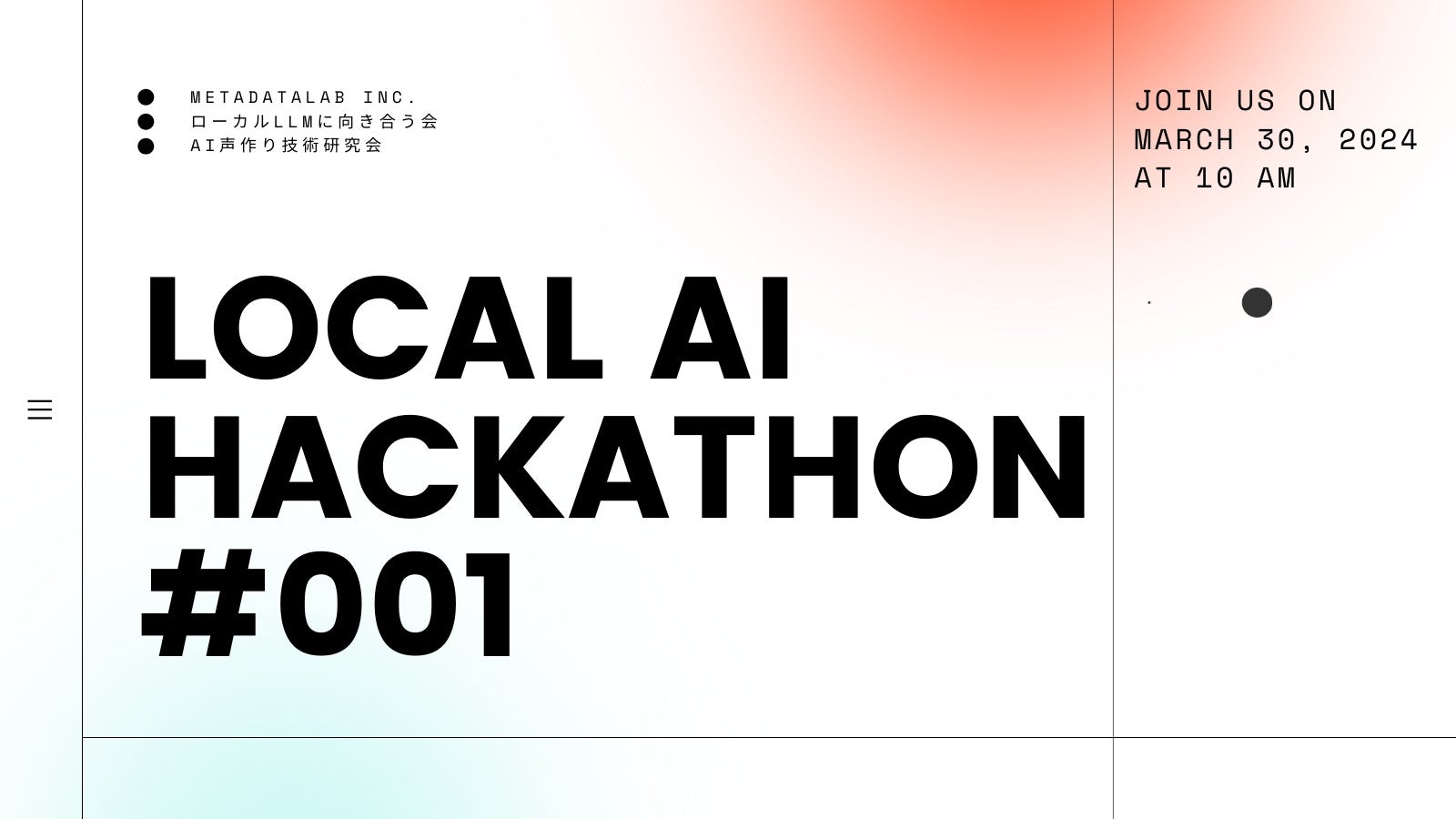 メタデータラボ、日本最大規模のAIハッカソン「LOCAL AI HACKATHON #001」~AIの民主化~を開催、本日より出場チームの募集を開始