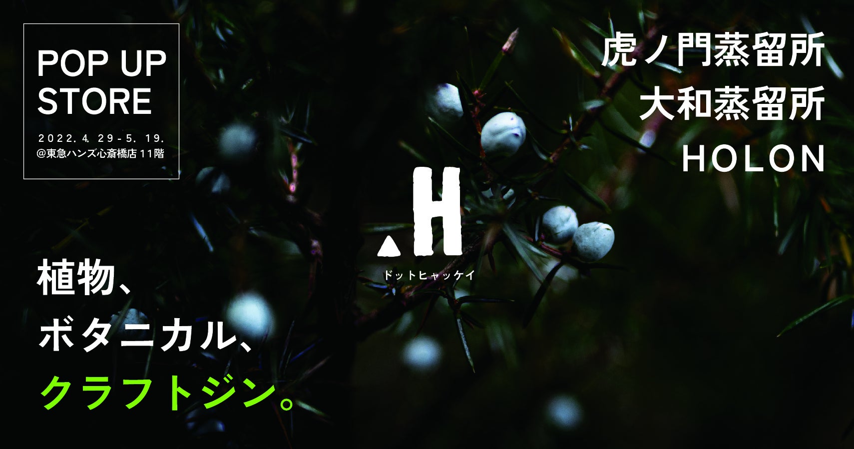 株式会社TABA(本社:東京都渋谷区)が運営するアウトドアフリークが好きに遊ぶメディア.HYAKKEI(ドットヒャッケイ)は東急ハンズ心斎橋店で4月29日(金)から5月19日(日)の期間、ポップアップショップ「植物、ボタニカル、クラフトジン」を開催します。