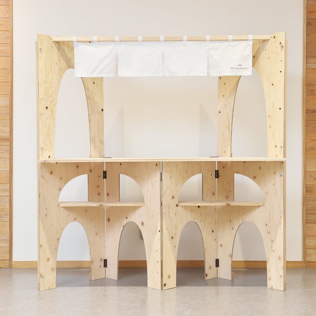 開発は、新型コロナウイルス禍で影響を受けた方々が気軽に屋外で経済活動を行えるよう、木材販売、特注家具の製造販売を行う老津木工が声をかけ、辛島准教授の前任地、豊橋技術科学大学(愛知県豊橋市)の建築サークルの学生と一緒にデザインを検討。