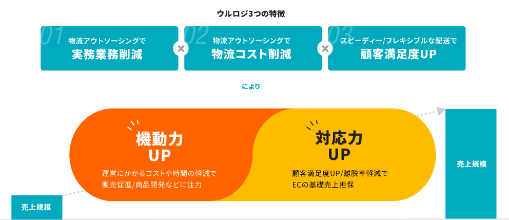ウルロジは中小規模のEC通販業者さまに最適な物流アウトソーシングサービスです。