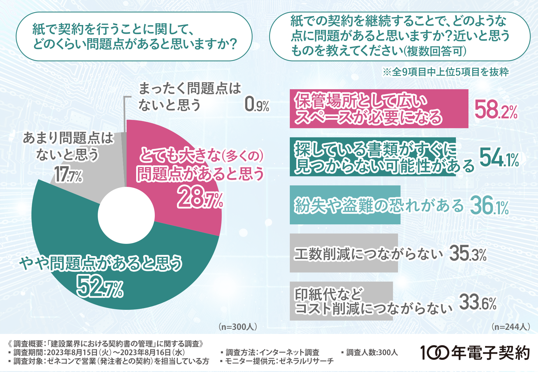今回の調査で、建設業界における紙媒体での契約についての問題点について分かりました。