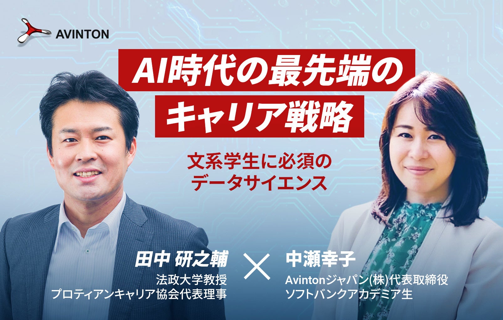 2022年7月7日、法政大学キャリアデザイン学部にて開催される法政大学キャリアデザイン学部教授/一般社団法人プロティアンキャリア協会代表理事 田中 研之輔 とAvintonジャパン代表 中瀬幸子によるデータサイエンス×キャリア教育について講義を一般の方向けにオンライン公開いたします。