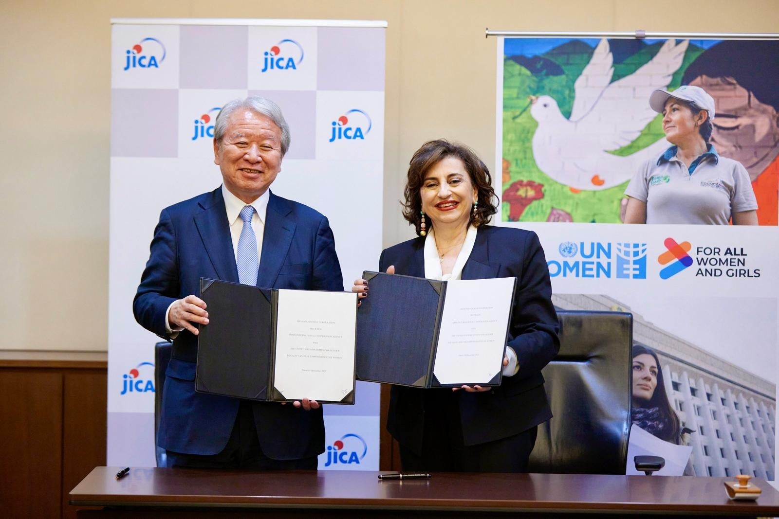 A central highlight of the visit was Ms. Bahous’ meeting with Mr. Akihiko Tanaka, President of the Japan International Cooperation Agency (JICA). Together, they signed the first-ever Memorandum of Cooperation between JICA and UN Women at the corporate level. The agreement marks a significant milestone, formalizing closer collaboration across areas of development cooperation and reinforcing a shared commitment to integrate gender equality and women’s empowerment throughout Japan’s international assistance, particularly in fragile and crisis-affected contexts.