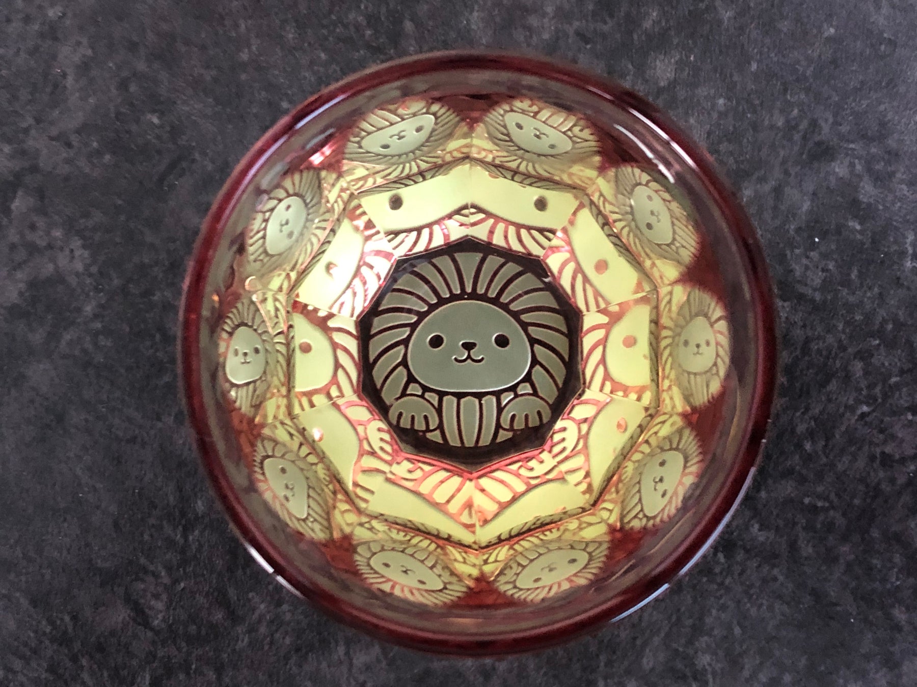 3.お酒を注ぐと底面のライオンが側面にも広がっていく仕掛け切子