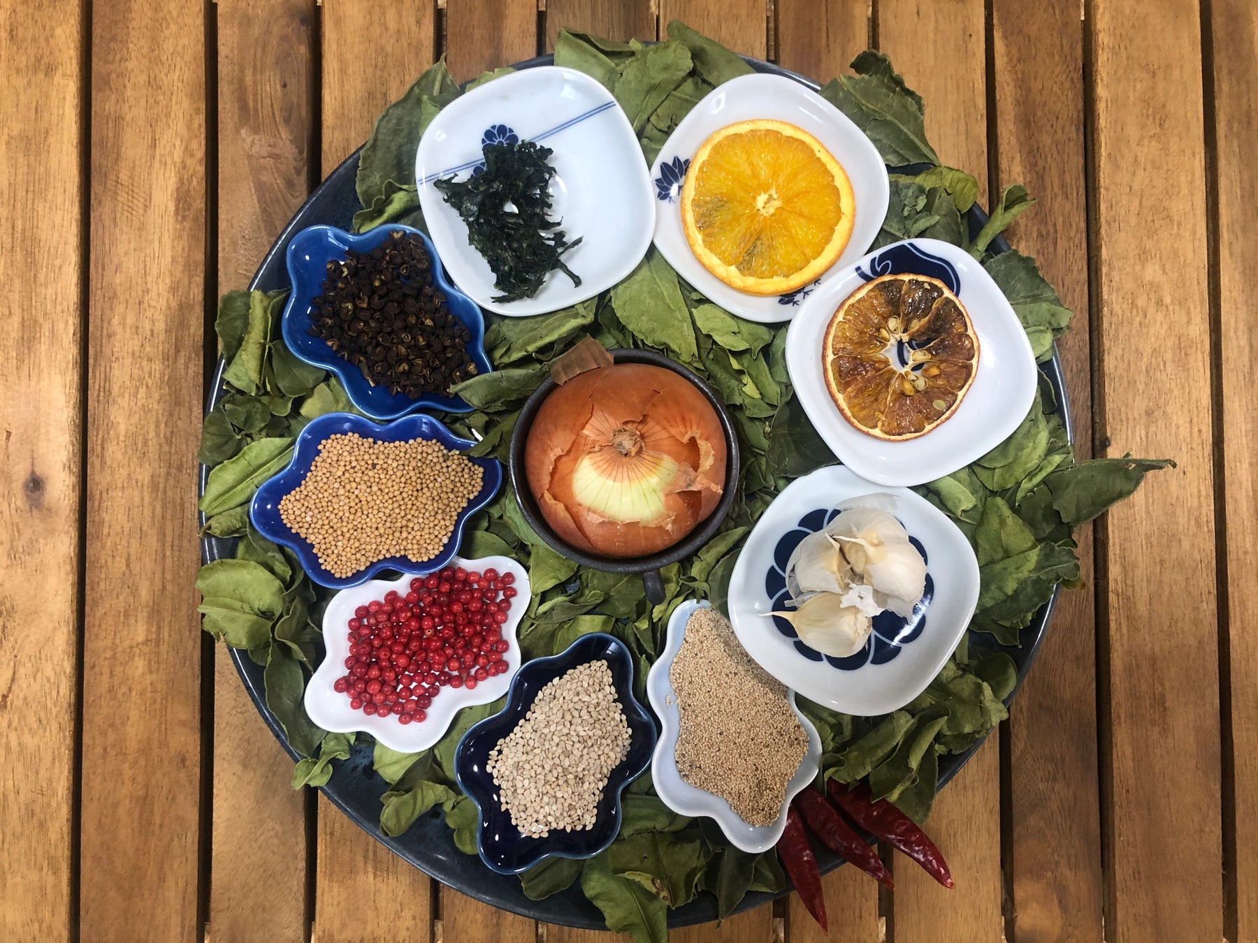 🔳原材料:ドライみかん(国産)、乾燥赤唐辛子、黒ゴマ、白ごま、炒り玄米、オレンジピール、あおさ、ドライハイビスカス、食塩、ピンクペッパー、乾燥にんにく、スペアミント
