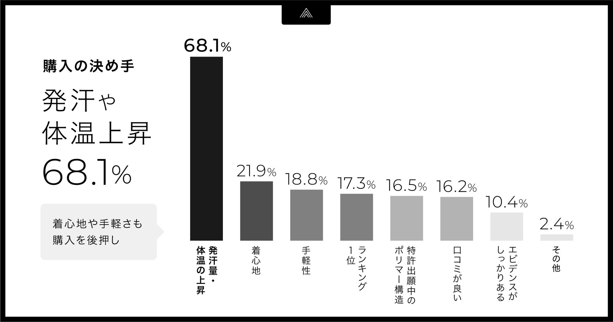 HEATTRAP(ヒートラップ)を着用することで得られる発汗や体温上昇が購入の決め手になり、期待感をもっている方が多いことがわかりました。着心地や手軽さも購入の後押しになっています。