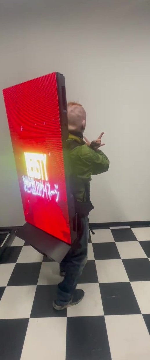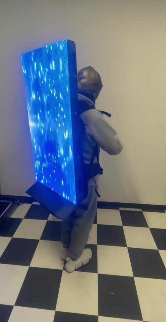 「あなたの事、バズらせます」日本初!バックパック型移動式小型LEDビジョン「ちんどんビジョン」登場