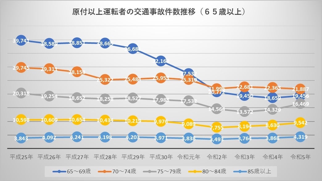 しかしながら、令和2年以降は、減少が底打ちし、横ばいから僅かに増加傾向にあります。今後も高齢者の割合は増え続ける事が予想されており、事故件数自体も高止まり※することが懸念されています。