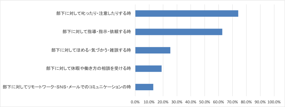 - 「ハラスメント」のトラブル回避をすることで、部下への育成指導・関係構築・能力開発に影響が出ている