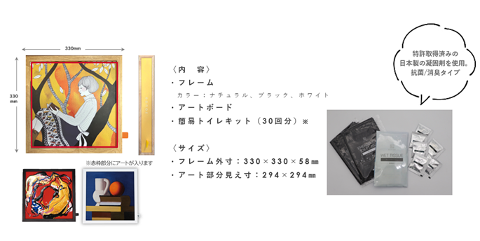 ●フレーム ●アートボード ●災害時トイレキット(凝固剤、蓄便袋、ウェットティッシュ)※30 回分