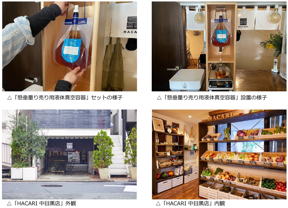 本取組みは、yolozの運営する野菜量り売り専門店「HACARI中目黒店」(東京都目黒区中目黒 4-4-10 1F)にて、2023年3月30日(木)より販売開始する新商品「無添加ベジブロス」において実施します。「無添加ベジブロス」は、本来廃棄になる野菜のへた・切れ端などを活用した出汁で、添加物不使用のため賞味期限が短く商品化が困難でした。インターホールディングスが保有する世界唯一の真空特許技術を用いた液体用の真空容器「懸垂量り売り用液体真空容器」の活用により、賞味期限を3日から14日に延ばしながら量り売り可能なため、この度の販売に至ります。