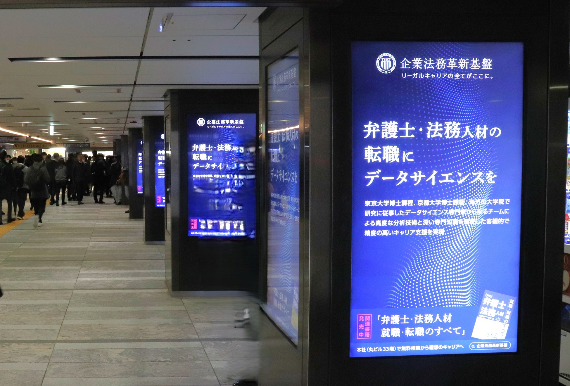 この度、企業法務革新基盤株式会社(以下、弊社)のサービスと実績に関する広告を、大手町駅に放映開始いたしました。