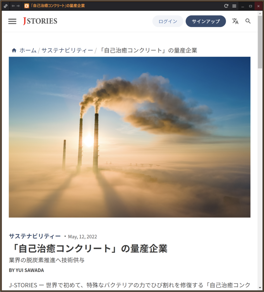 J-STORIESは、公平公正で環境にやさしい社会改革の推進をめざすESG(環境、社会、ガバナンス)やSDGs(持続可能な開発目標)の重要性が高まる中、日本の大手企業やスタートアップ企業などが様々な分野で取り組む新たなソリューション(解決策)を世界に伝える日本語と英語のバイリンガル・メディアとして本年4月1日、正式に配信サービスを開始いたしました。