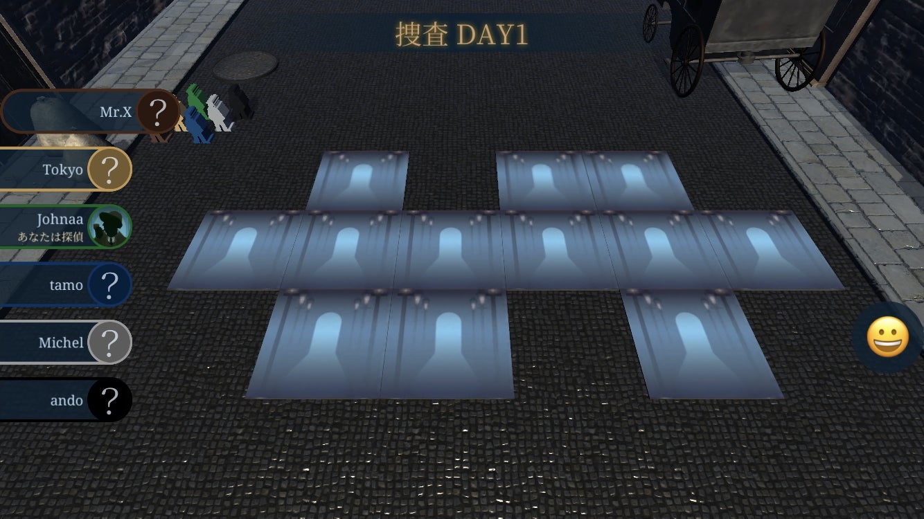犯人プレイヤーが殺人を犯すタイルを選択しているシーン
