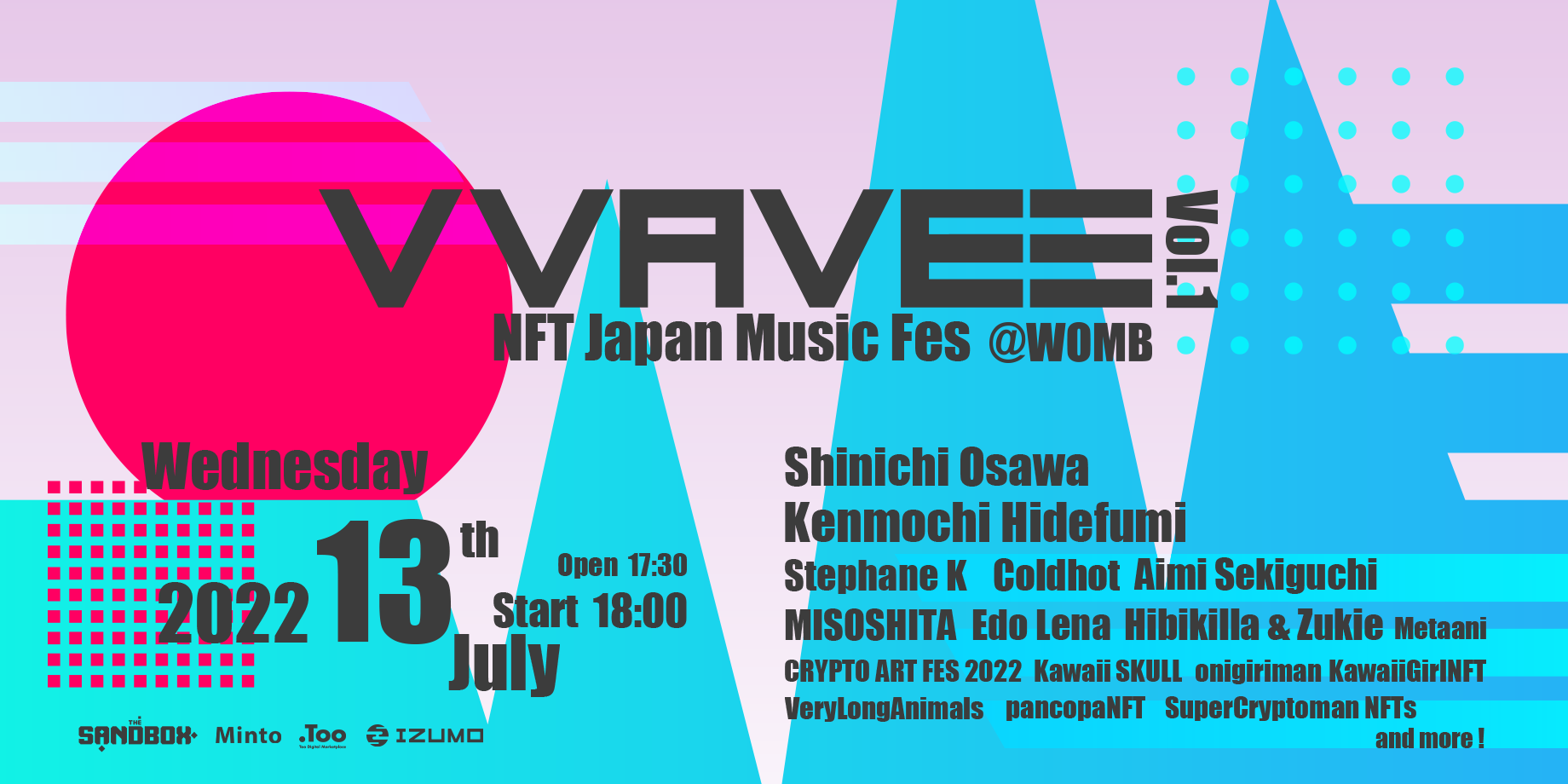 「VVAVE3 - NFT Japan Music Fes vol.1 -」の概要と参加アーティストは以下の通りです。