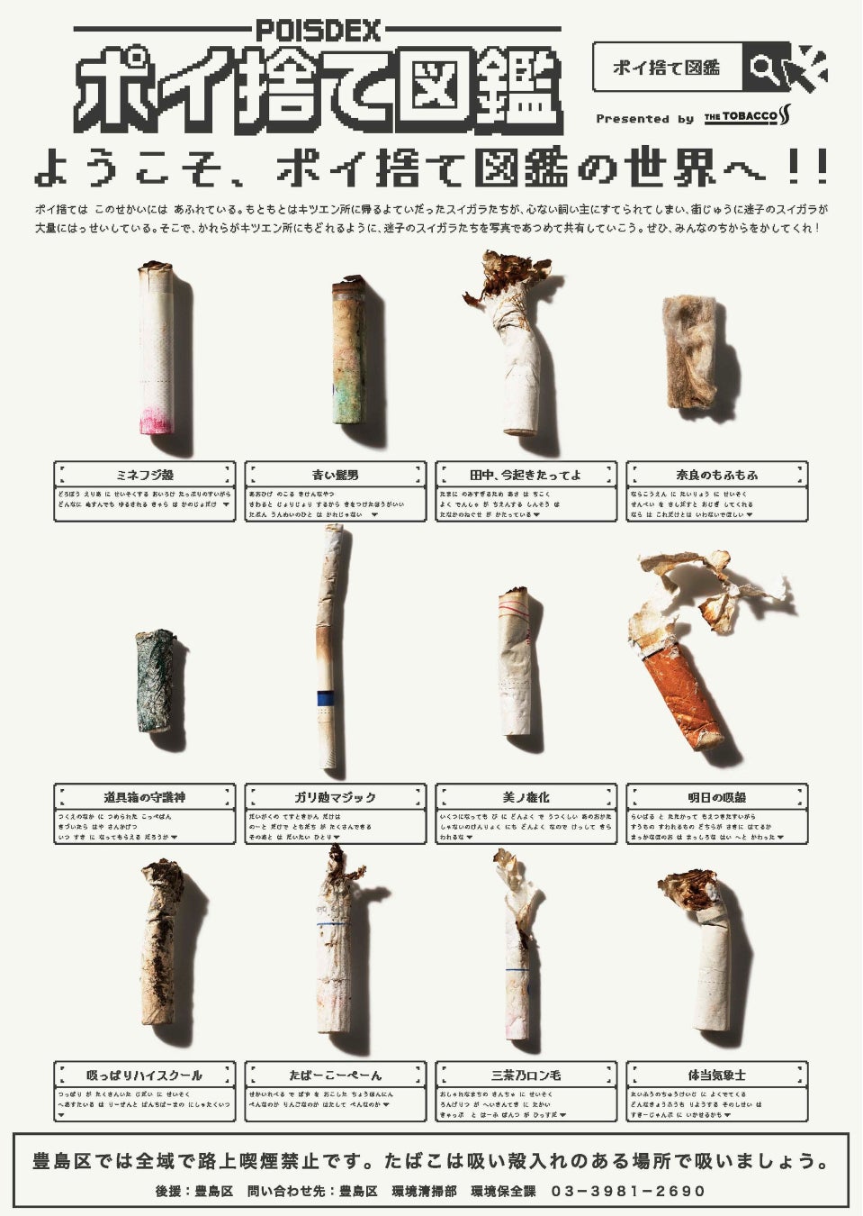 このようなポスターを見て、少しでもたばこのポイ捨てが減り、きれいな街づくりの一助になれば幸いです(豊島区環境保全課)