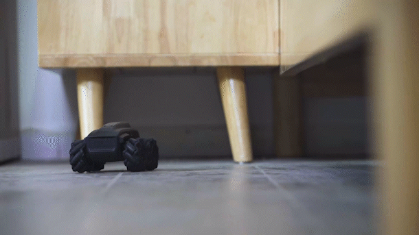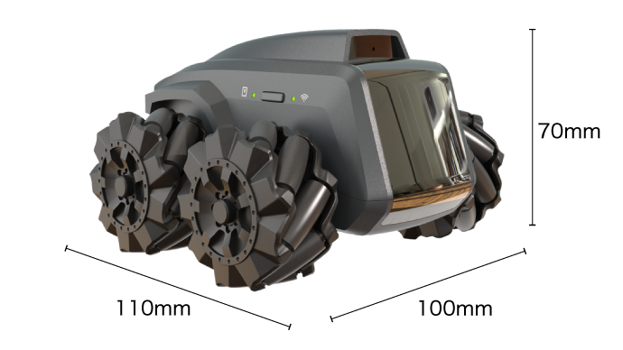 ■防滴仕様で屋内外可能。小さいサイズで狭いところも4WDメカナムホイールで軽快な動き。
