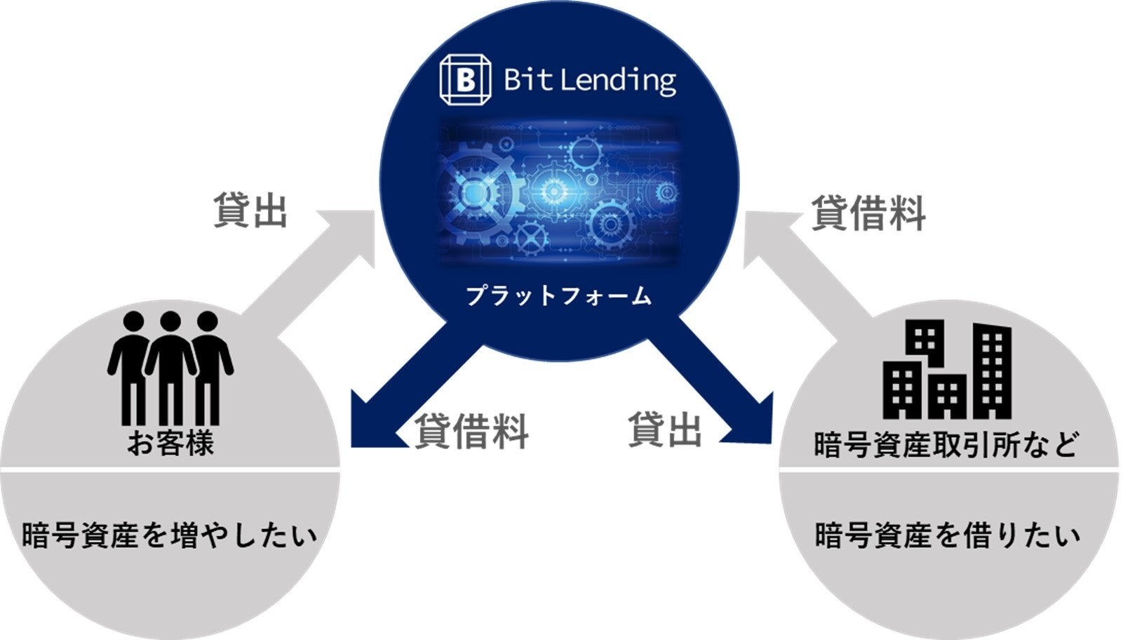 「BitLending」は、暗号資産を貸出した顧客が既定の料率の貸借料を得ることができる暗号資産レンディングサービスとなります。また本サービスは、国内暗号資産レンディング特化型のサービスとしては、最高貸借料率、最速返還を実現しています。(※当社調べ)