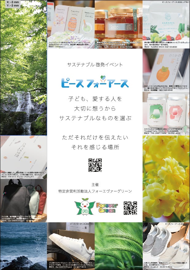 地球温暖化防止活動や、環境教育・自然エネルギーの普及に取り組む特定非営利活動法人フォーエヴァーグリーン(東京都渋谷区、理事長:渡邊圭)は、株式会社ブロッサムレポート及び株式会社西田書店が大丸須磨店にて共催するイベント「全国のこだわり書店・出版社 大集合!大古書市&新刊即売会」内の一部エリアにて「ピースフォーアース 2024 関西」を10月23日〜11月4日まで開催いたします。
