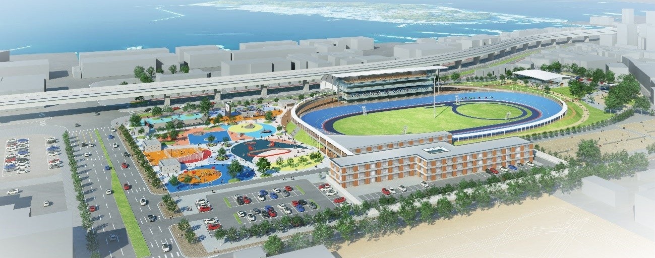 当社は当該事業における選定企業として、再整備事業の推進と競輪場運営を担いますが、再整備においては「競輪とアーバンサイクルスポーツ(※)が融合する市民参加型都市公園=アーバンサイクルパークス広島(Urban Cycle Parks HIROSHIMA)」というコンセプトのもと、完成予想図にもあるように、広島競輪場が日本最大級のアーバンサイクルスポーツ施設を内包した画期的な都市公園および地域住民に開かれた施設として生まれ変わることを目指します。具体的には、競輪場に併設するホテル(選手宿舎兼用)建設、BMXやスケートボード、ランバイクなどのアーバンサイクルスポーツ施設の設置、多様なジャンルの飲食店舗展開、サイクリスト向けの施設を設置するなどの付帯事業として計画しております。新施設のグランドオープンは2025年4月の予定です。