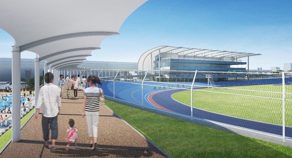 <完成予想図(空中歩廊から見たメインスタンド)>