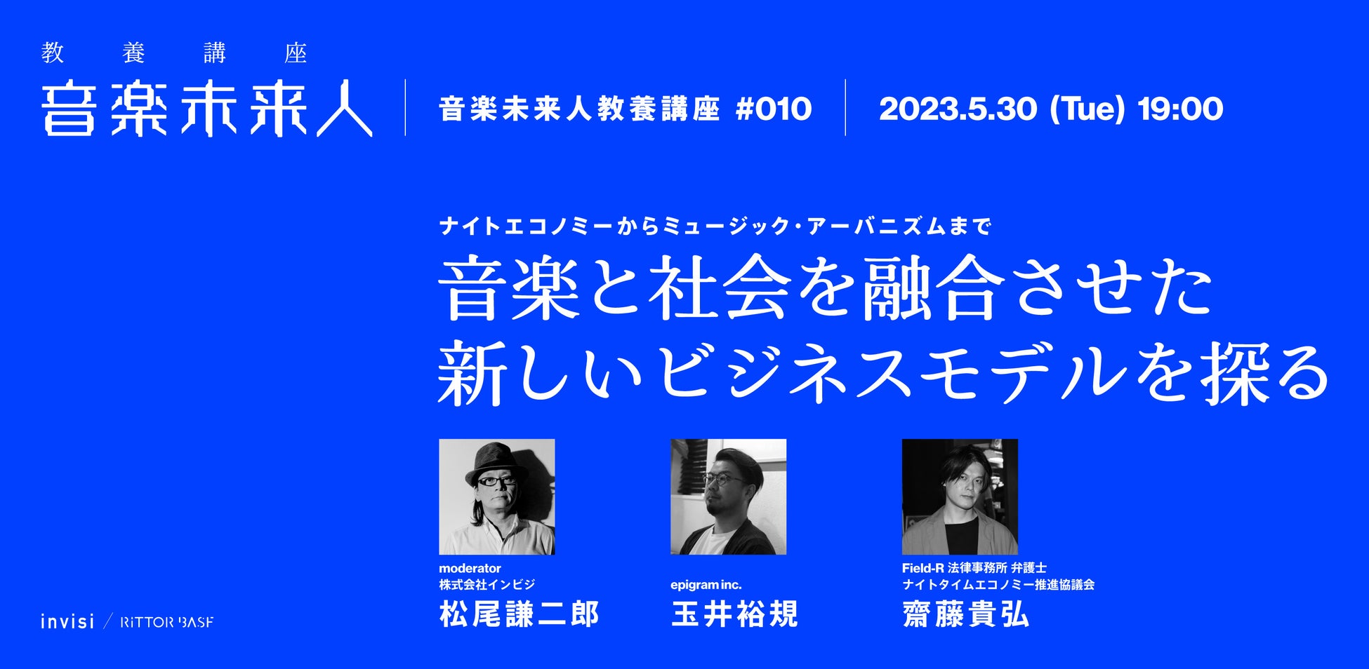 ナイトエコノミーほか新しいビジネスモデルを探る 「音楽未来人教養講座」第10回、5月30日開催。