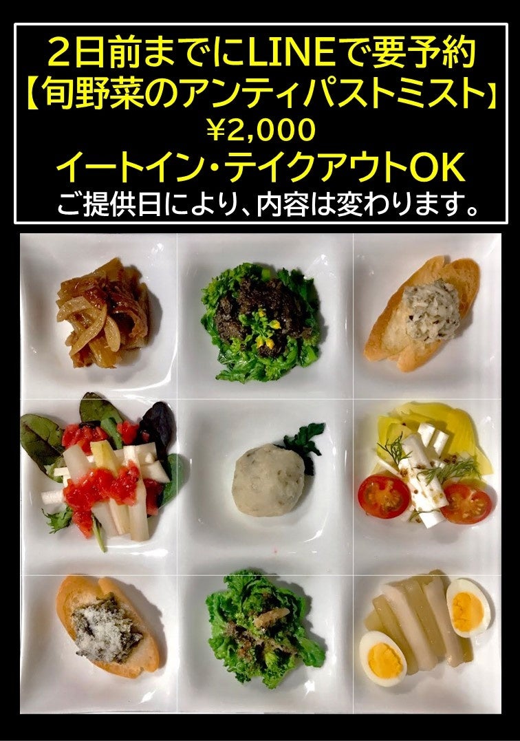 ※旬野菜のアンティパストミストは、2日前までの完全予約制となります。