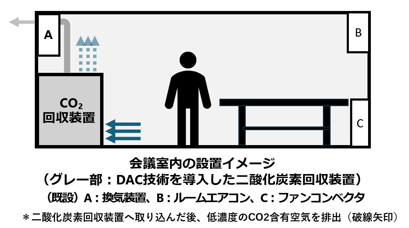 概要:空間中の二酸化炭素を回収する二酸化炭素回収装置の実証実験