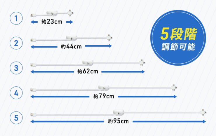 ■5段階で調節可能なケーブルは最長95cmまで伸ばせます!