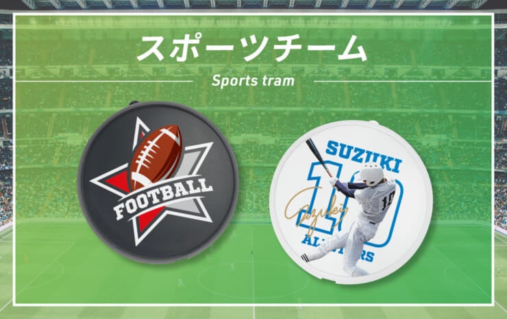 チームのロゴやマスコットを印刷していただくのはもちろん、チーム選手ごとに写真や背番号をプリントすると、推し選手個人のグッズが手に入るので、ファンに喜んでいただけること間違いなし。オリジナルモバイルバッテリーもあわせて制作するとセット販売につながります。