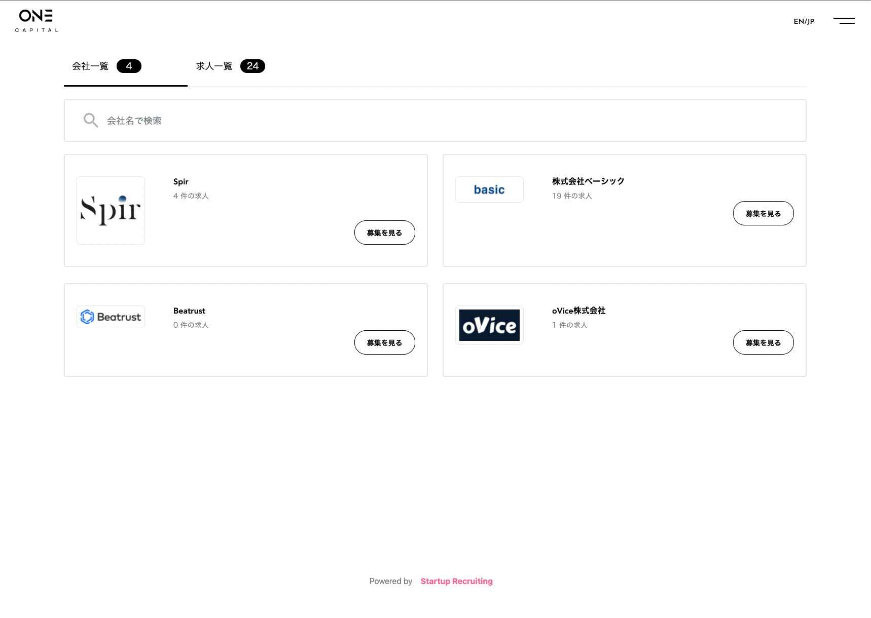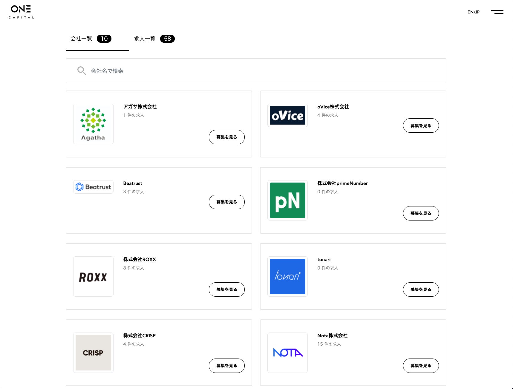 投資先の求人情報を掲載しています。気になる求人情報がございましたら、ぜひ、応募してみてください。https://onecapital.jp/jobs