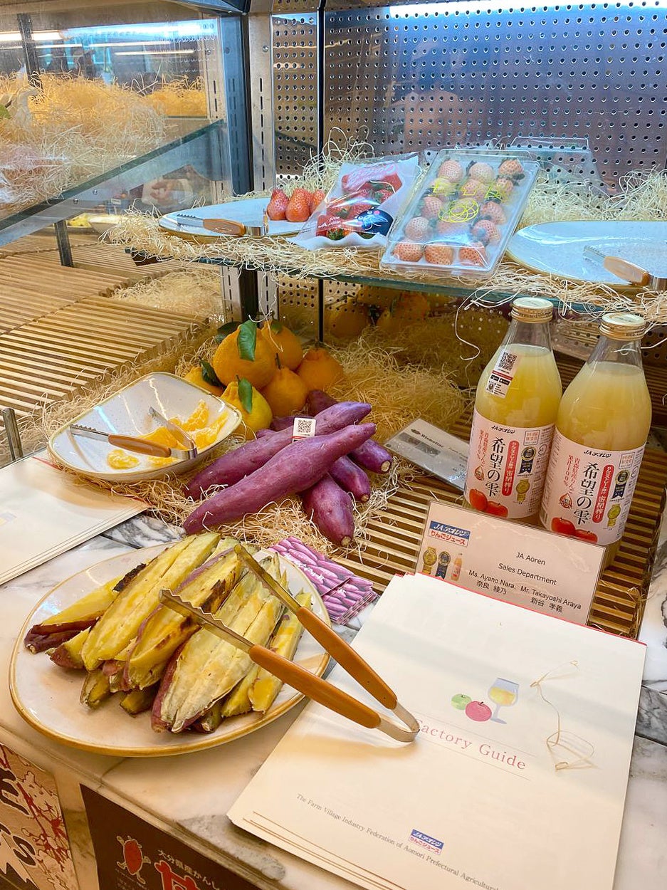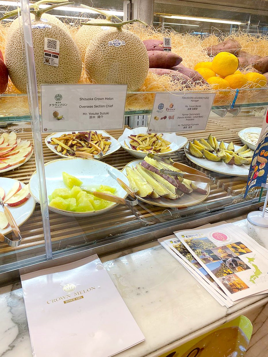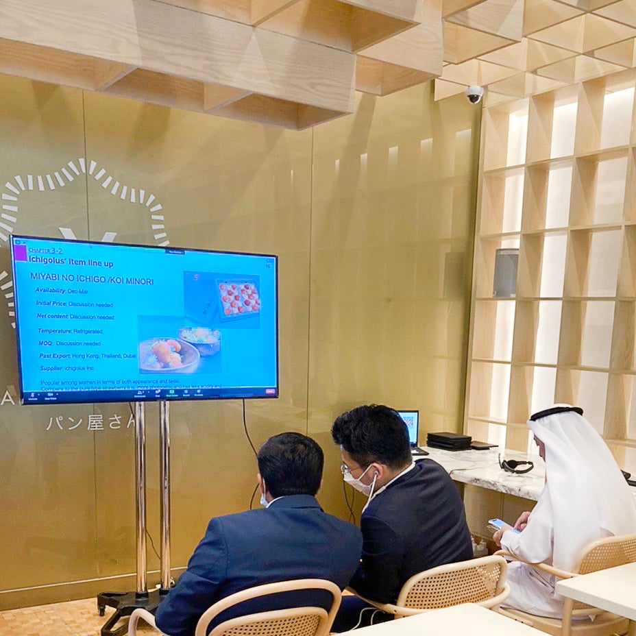 2021年12月2日から、ジャパンデーである12月11日まで、『YAMANOTE ATELIER』The Dubai Mall店において日本産青果物のバスケット展示・プロモーションを行いました。また、12月12日と12月13日には、ドバイ現地のバイヤー、シェフ、パティシエ、マスコミ、一般消費者を招いての試食会(サツマイモ、レンコン、リンゴ、イチゴ、メロン等14種)及びオンラインセミナーを行いました。後日、参加者である日本の生産者に向けたアンケート結果では、全員が「今後(の展開先として)ドバイを市場として考えている」と答えました。また、現地バイヤーに向けたアンケートにおいては、88%がこのイベントを通して「日本青果物に一層の興味がわいた」、83%が「日本青果物の取り扱いを開始したい」との回答が得られました。オンラインセミナーにおいては、事前に通訳者を交えての勉強会や海外の方向けの資料を充実させることで、日本の生産者が日本にいながら現地バイヤーや消費者との交流を深めることができました。
