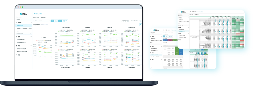 市場全体の顧客心理/行動を9segs®で定量的に理解したい方向けのソリューション。膨大なカテゴリの9segs®実施経験に基づいて調査設計・収集された9segs®データへのアクセスを、分析ツール「9segs® analyzer」を通じて提供します。カテゴリ内の主要ブランドに対する心理・行動データをシンプルかつ実用的な形でご自身で分析でき、市場全体を手早く簡単に理解することができます。
