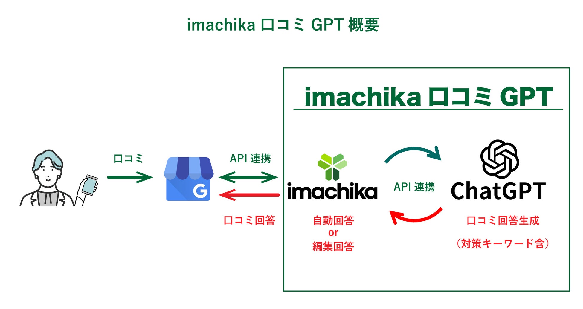 店舗自動集客ツール『imachika(イマチカ)』を開発・提供するいまチカ株式会社(東京都中央区、代表:伊利夫、以下いまチカ)は、imachikaのオプション機能として、ChatGPTを活用した口コミ自動返信サービス「imachika口コミGPT」をリリースしました。Googleビジネスプロフィールなどの口コミに対して、最適な返信を自動化できます。これにより、顧客満足度の向上と顧客対応業務の負荷軽減、さらにMEO対策を同時に実現できます。