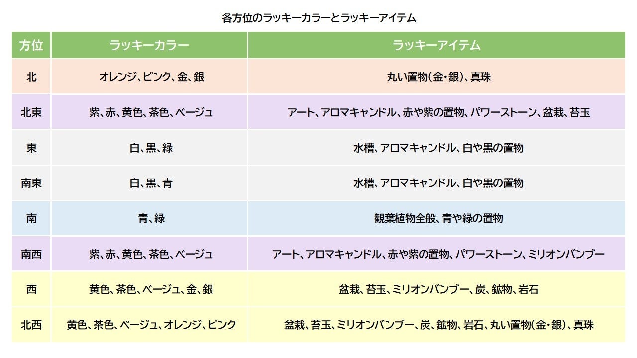家相では、家の中心(重心)から見た時に、各方位の幸運を引き寄せるラッキーカラーがあります。そして、そのカラーをカーテンやソファー、ラグ、置物などで活用すると、家のパワーが高くなり、幸運が引き寄せられると考えられています。