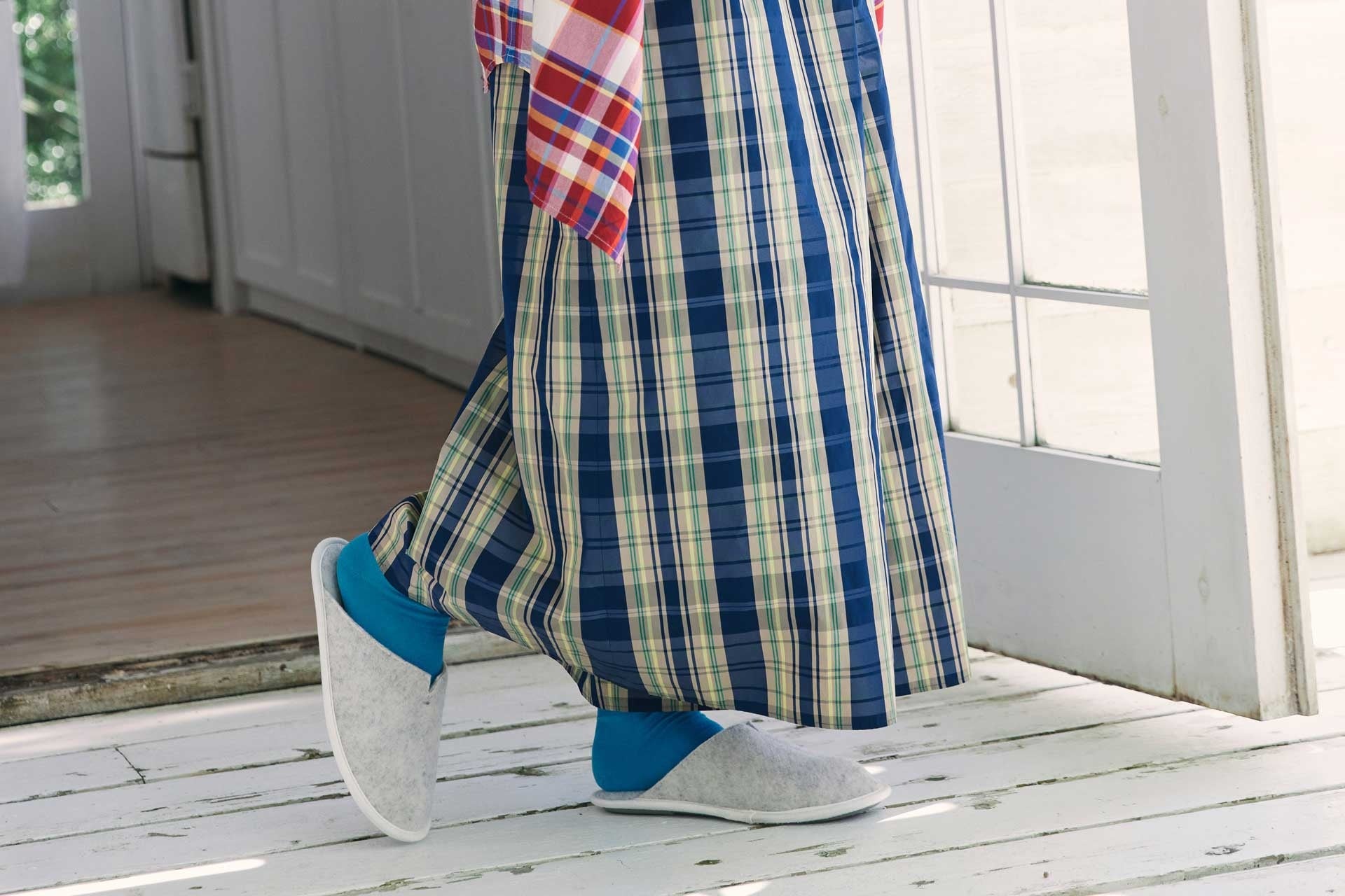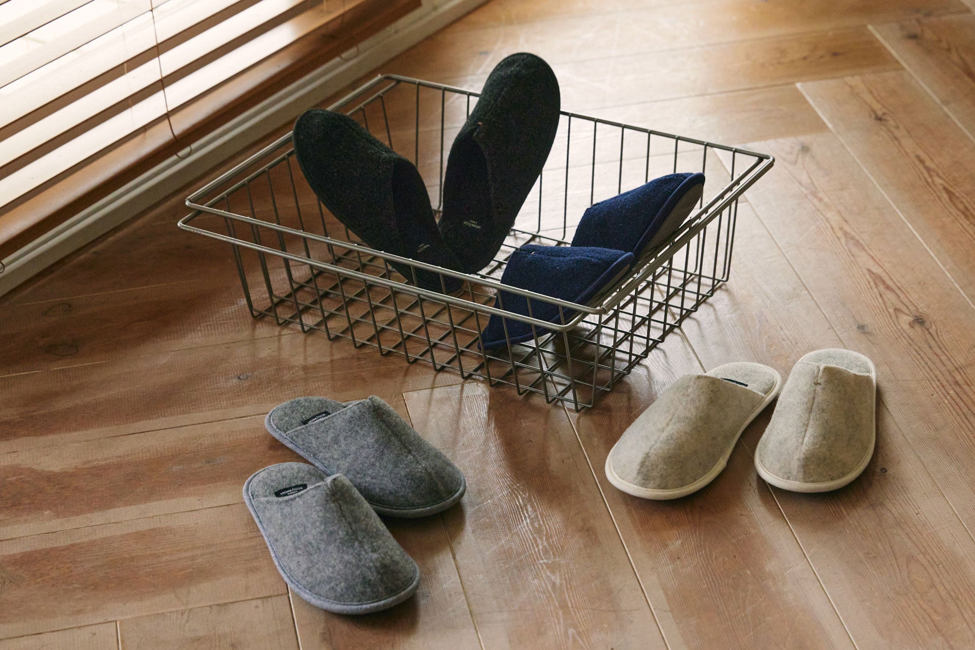 細身のシルエットはフィット性が高く、見た目に美しいフォルムを追求するために何度も試行錯誤しました。履いている時だけでなく、履いていない時も佇まいが美しいスリッパです。
