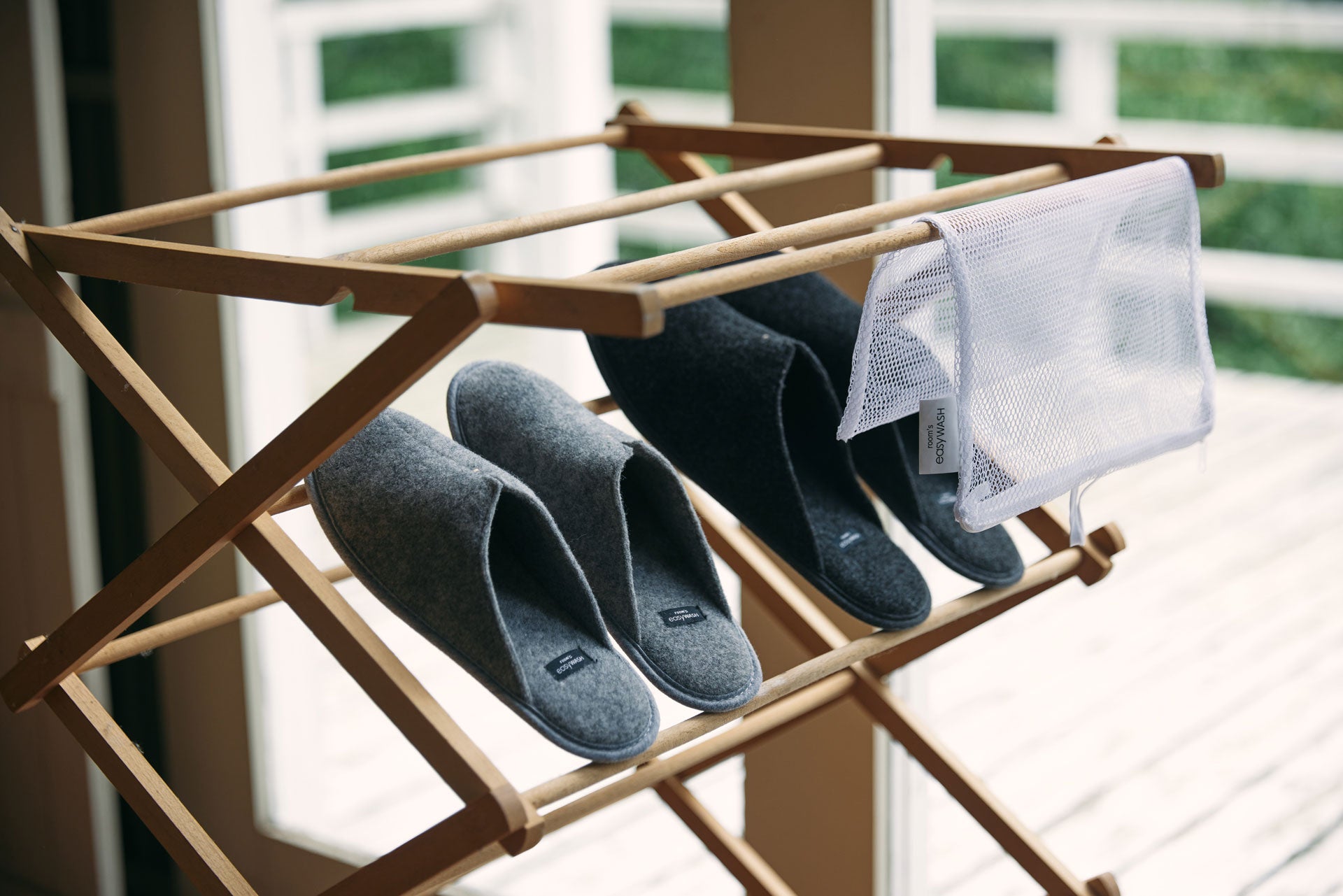 付属されるオリジナルのランドリーネットはroom’s easyWASHのロゴネーム付き。専用のランドリーネットなのでスリッパを入れるのにピッタリなサイズです。持ち運びや保管する際に大変便利なフック(持ち手)付きです。