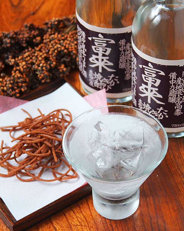 今回冨來屋本舗で作る「きび焼酎」は高梁川流域の風土を感じさせるほのかな甘みとさわやかな香りが特徴です。