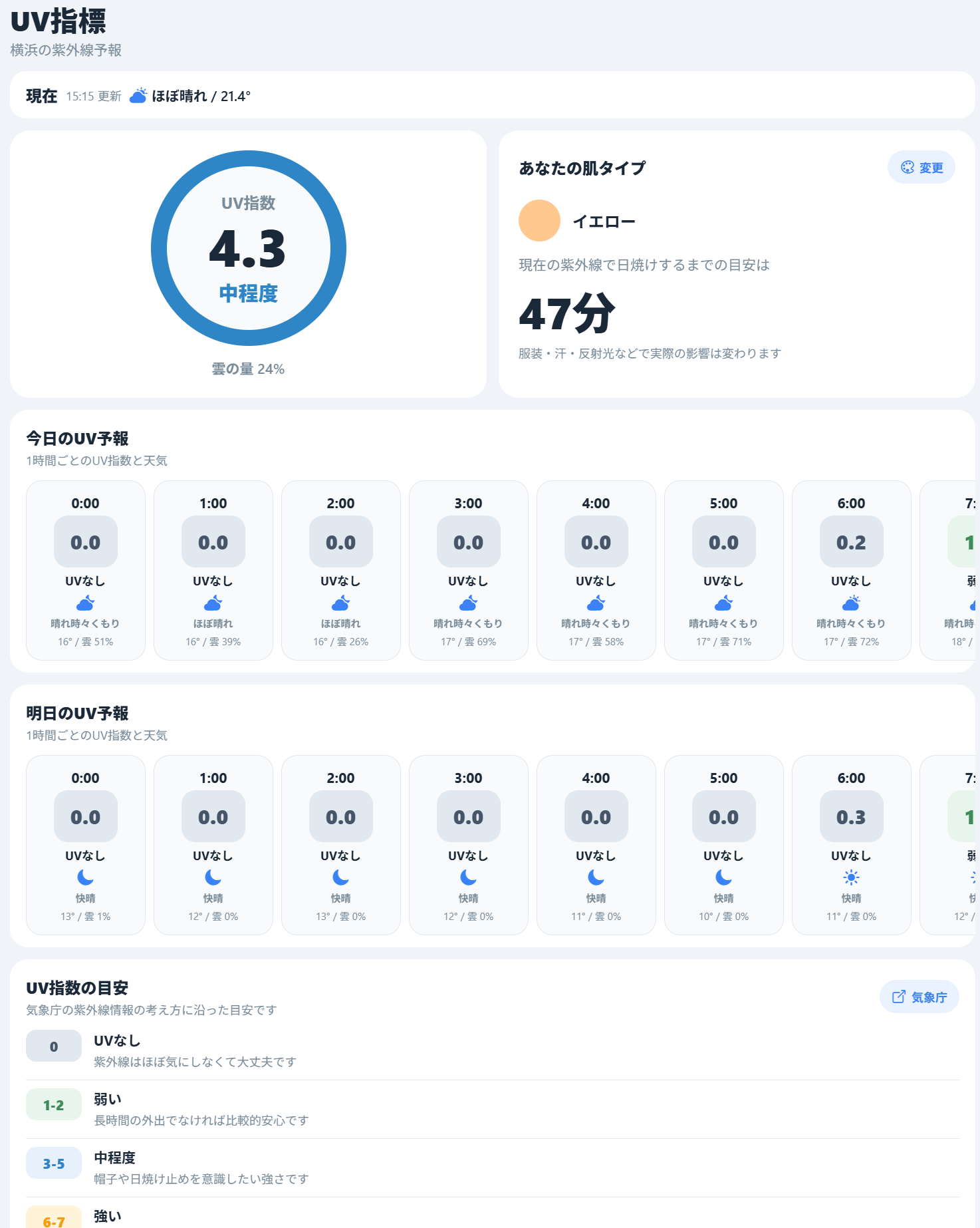 ・時間帯ごとの紫外線レベル確認
