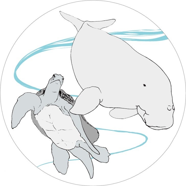 2つ目の参加者特典として、限定のオリジナルステッカーをプレゼントしています。ステッカーに、乾漆彫刻家の大曽根俊輔氏によるジュゴンとアオウミガメのイラストが描かれています。