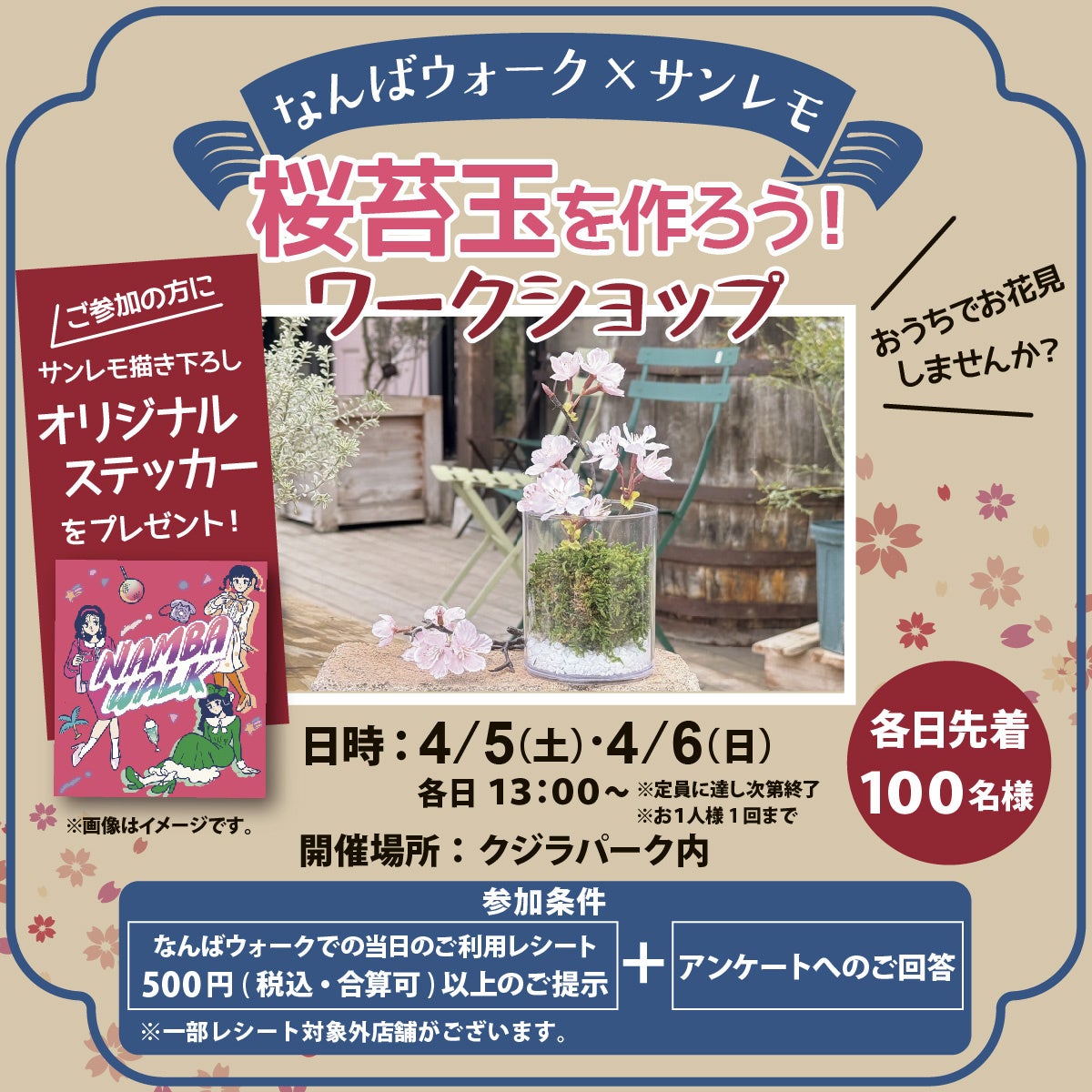 オリジナル桜苔玉を作れるワークショップイベントを実施します。