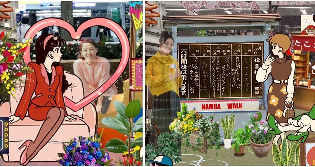 「なんばウォーク」の各広場にタイムトラベルしたような空間が出現!?大阪出身人気イラストレーター「サンレモ」が昭和時代に合わせたイラストを描きおろし‼なんばウォークで昭和の大阪のディスプレイを楽しもう!