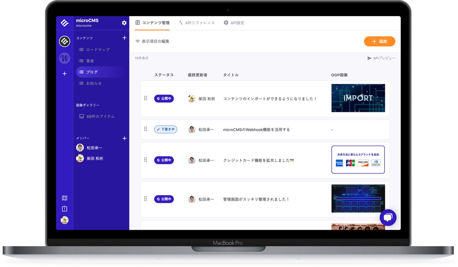 APIを作成するとデータ入稿用の管理画面が自動生成され、誰でも簡単にコンテンツを作成・管理できます。 さらに、コンテンツはAPI経由で取得可能なためエンジニアやデザイナーはさまざまなプラットフォームでコンテンツを利用できます。