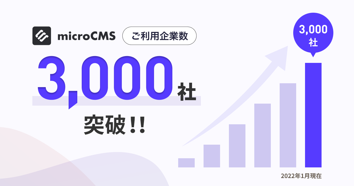 『microCMS』ご利用企業数が3,000社を突破、料金プラン改定により法人も無料プランのご利用が可能に