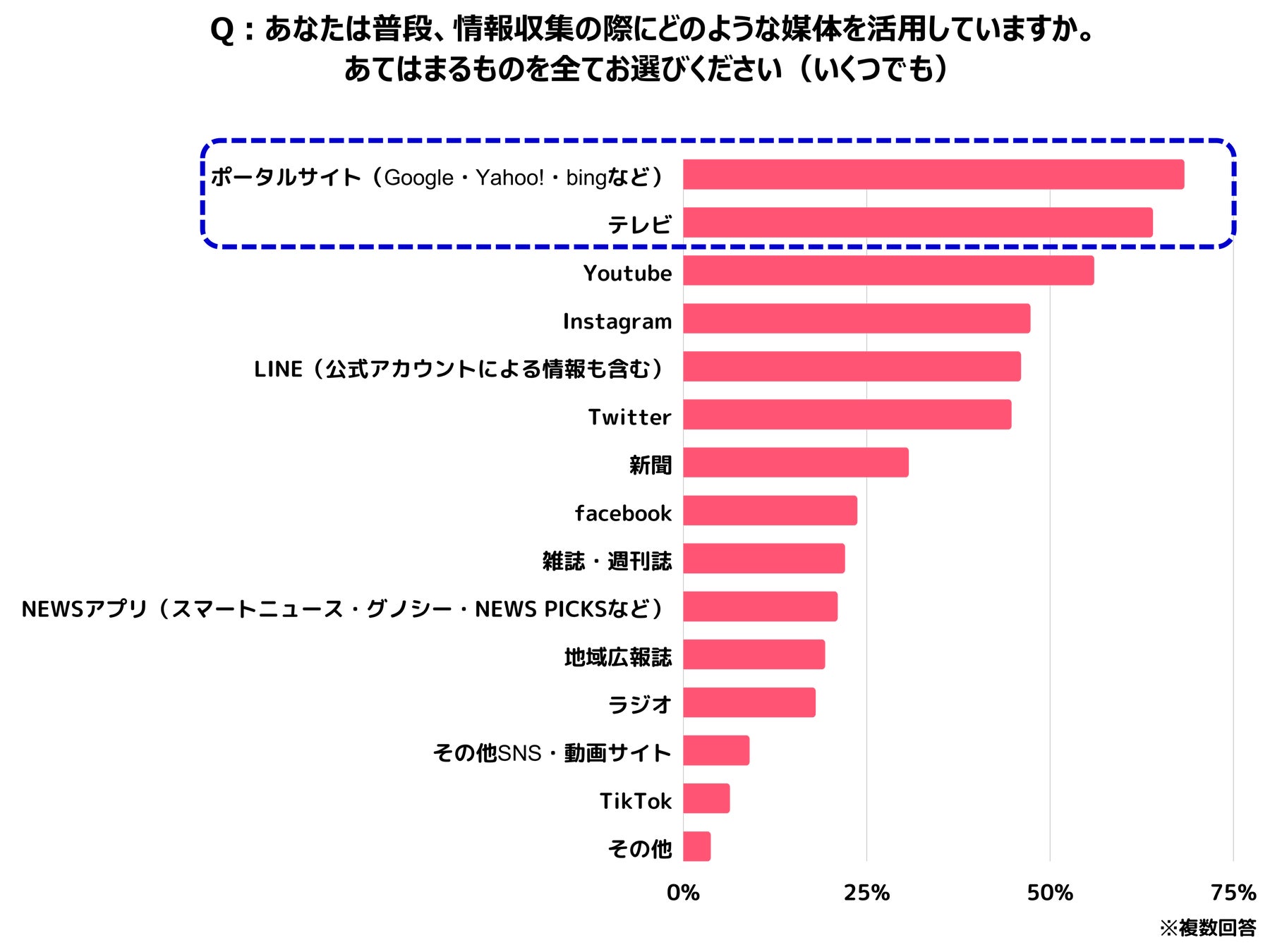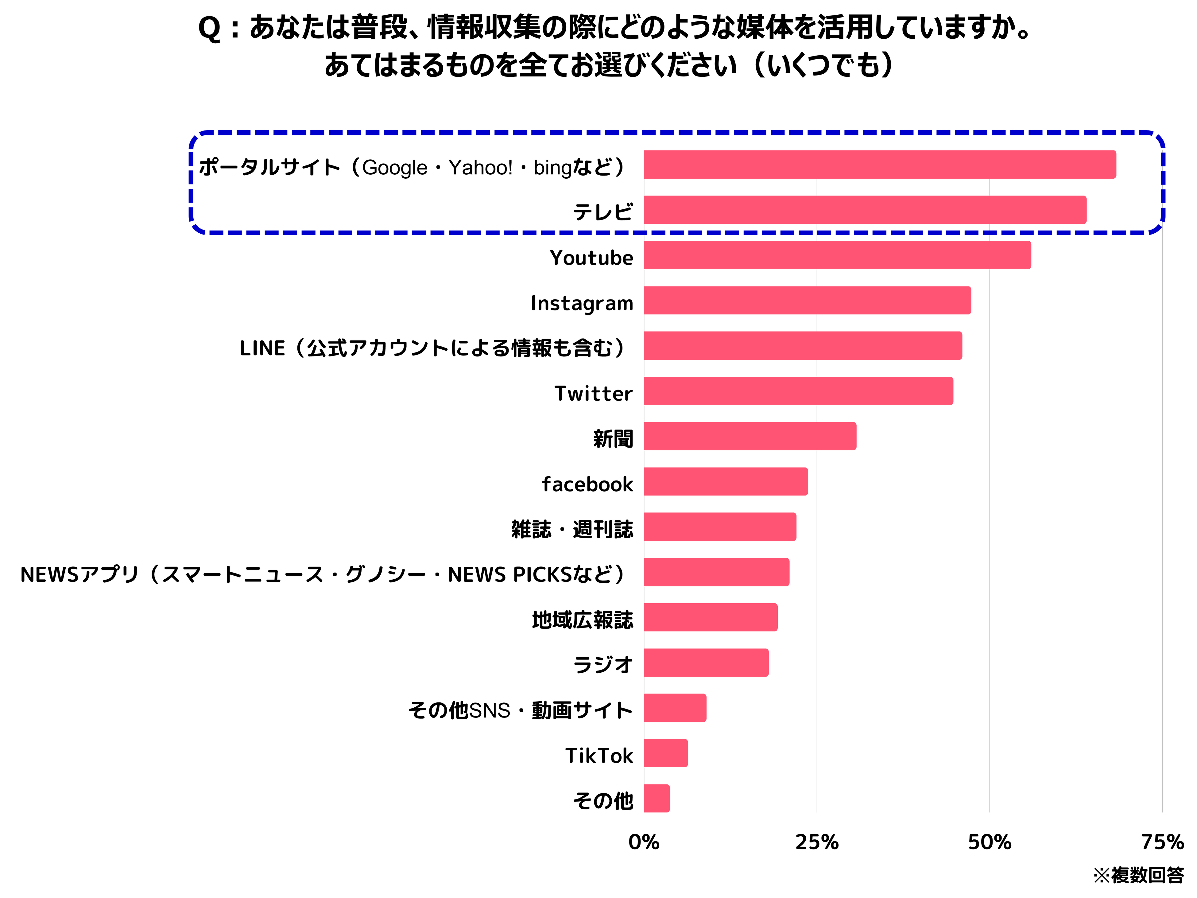 情報収集の媒体は、「ポータルサイト」「テレビ」「Youtube」が上位。