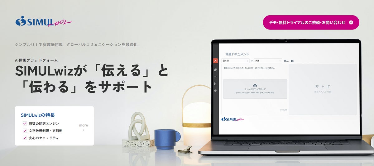 株式会社サイマル・インターナショナル(本社:東京都中央区、代表取締役社長:吉野久美子、以下:サイマル)は、法人向けにAI翻訳プラットフォーム「SIMULwiz(サイマルウィズ)」の販売を開始いたします。また販売に合わせ、実際に体験いただけるデモ・無料トライアルのお申し込みも実施いたします。