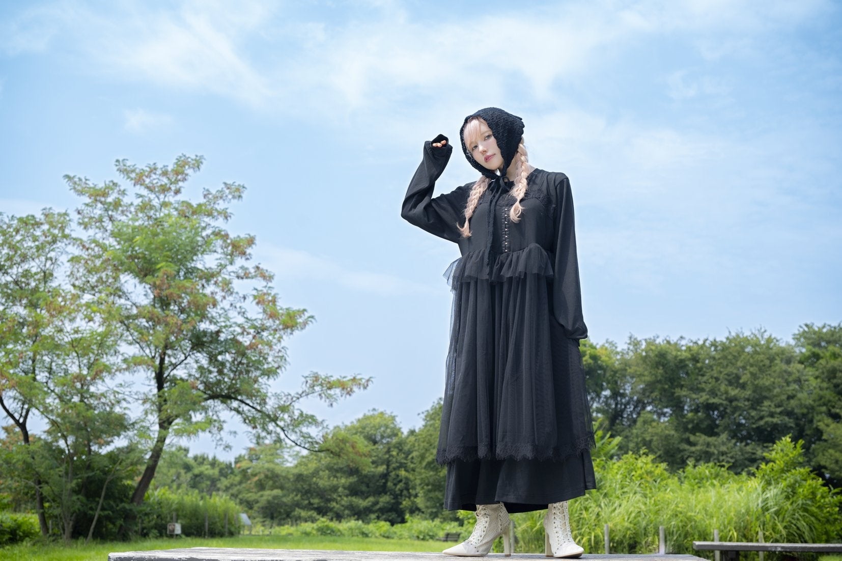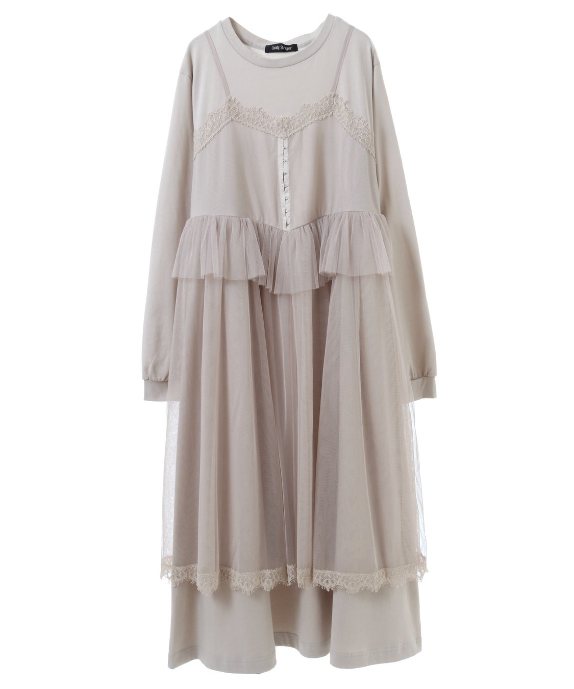 今回のコレクションではガーリーなムードから着想を得た全部7型のアイテムをラインナップ。リボン付きのビッグカラーや細部のディティール使い目が惹くキルティングのセットアップ ダスティーカラーのスウェット素材を用いることで甘さを抑えたセットアップ1枚でスタイリングが完成するランジェリーディティールのレイヤードワンピース スタイリングのアクセントに最適なバブーシュカやロゴ入りのシアーハイソックスなどコラボレーションならではのスペシャルなアイテムに仕上がりました。