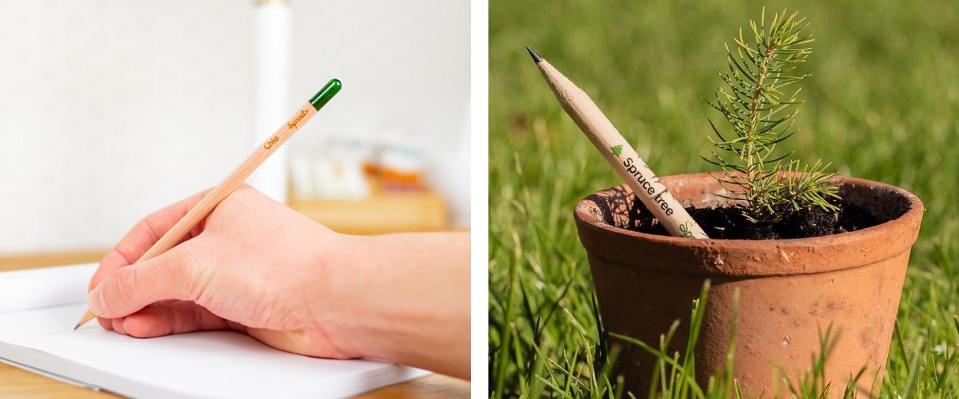 2012年マサチューセッツ工科大学(MIT)の3人の学生が、「未来のオフィスに必要なものを開発する」という授業の一環でプラスチックを使わない鉛筆に着目し、使い終わった後に植えられる、自然に優しい筆記具として発明しました。その鉛筆をデンマークにあるスプラウト社が商品開発し、現在まで世界80か国以上で約3000万本以上が販売されています。