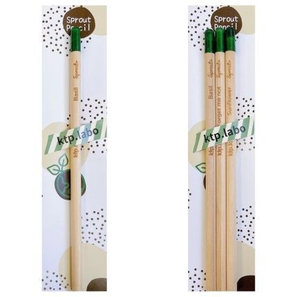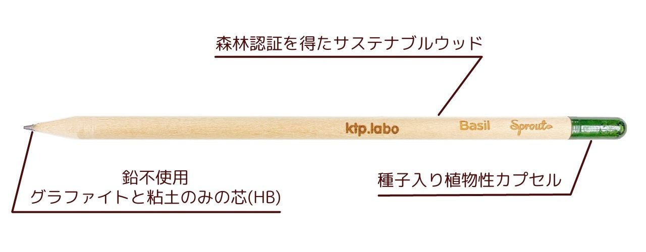 ktp.labo(ケーティーピーラボ)では、環境に配慮したエコ素材を使用した雑貨を取り扱っています。その中でも人気の商品が「芽が出る鉛筆」です。短くなり筆記具としての役目を終えた鉛筆を捨てるのではなく土に植えることで、私たちを楽しませてくれる花や植物へ生まれ変わる、今話題のサステナブル商品です。