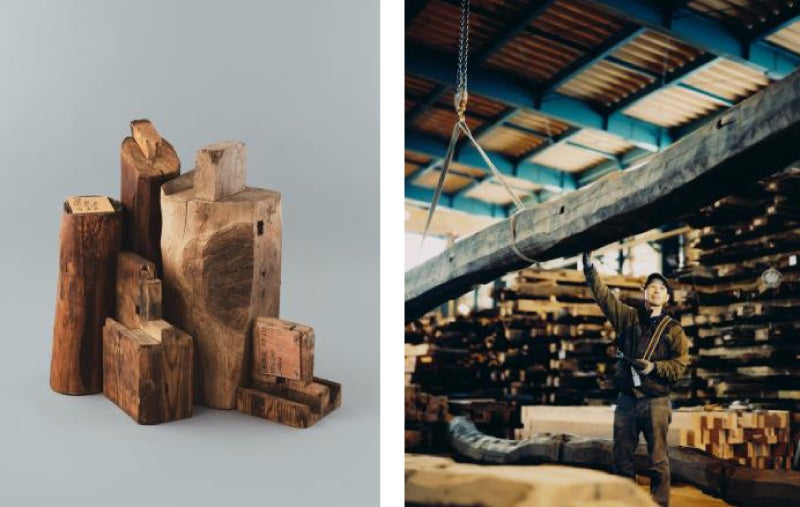 長野県長野市の建築会社、山翠舎による新ブランド。何代にもわたり大切に使われた古民家の柱や梁から良質な木材をセレクトし、職人の手仕事で唯一無二のアートピースへと昇華させています。時の重なりを投影する「古木」を通じて手仕事と暮らしのストーリーを現代に繋げ、新しい美しさを提供します。